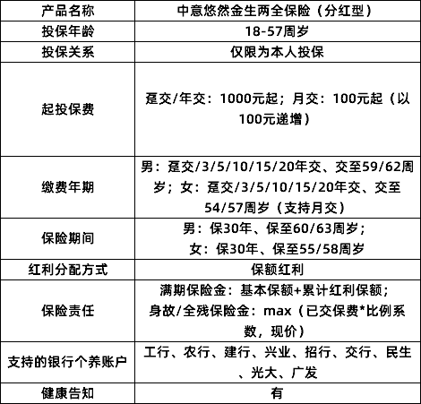 它就是由中意人壽(股東:中石油+意大利忠利保險(xiǎn))承保的個(gè)人養(yǎng)老金保險(xiǎn):中意悠然金生兩全保險(xiǎn)(分紅型)。
