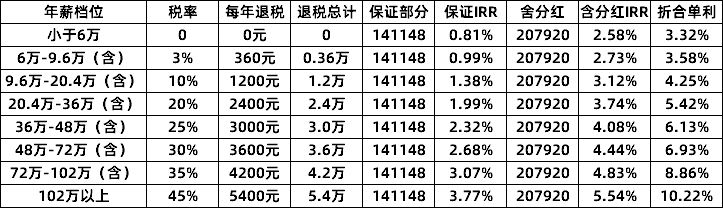 2、能攢錢(保底+分紅,即便不退稅也有可觀的收益)