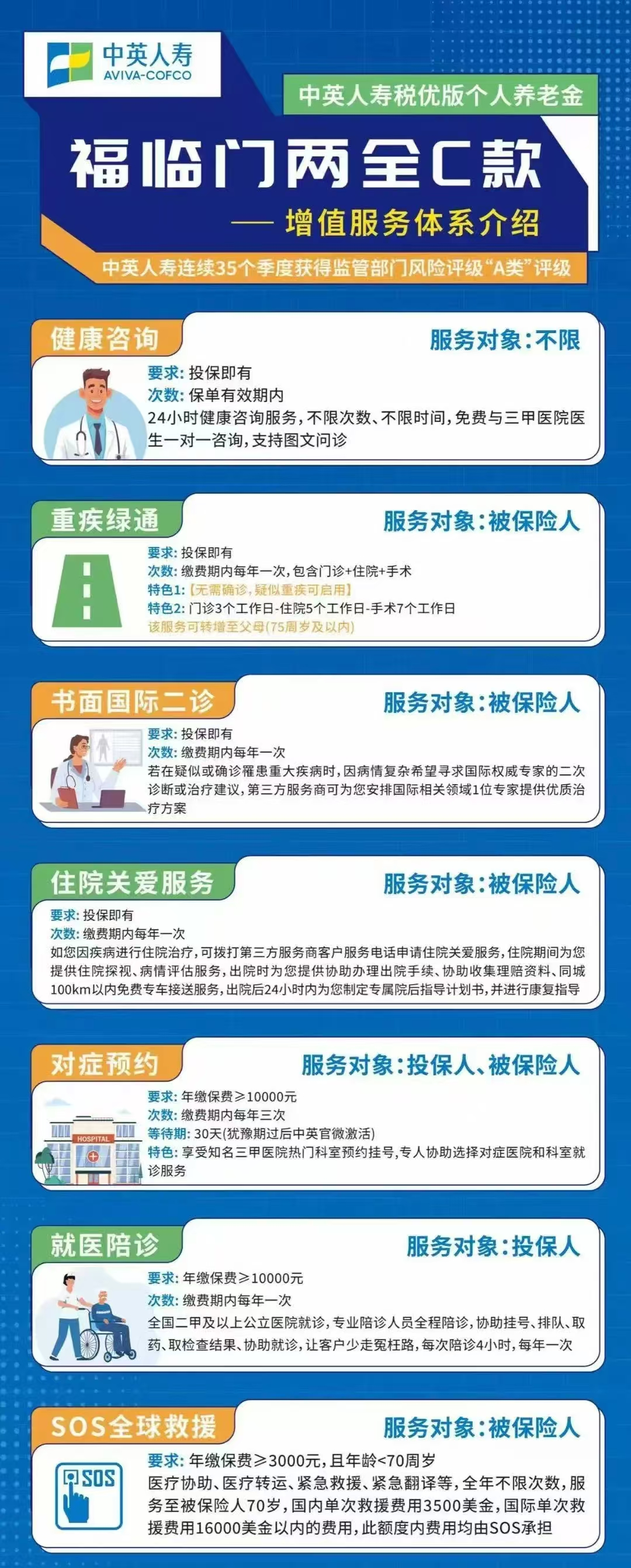此外還提供書面國(guó)際二診、住院關(guān)愛服務(wù)、SOS全球救援等增值服務(wù)就不一一展開講了。