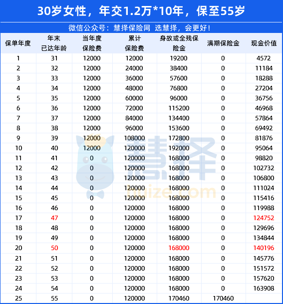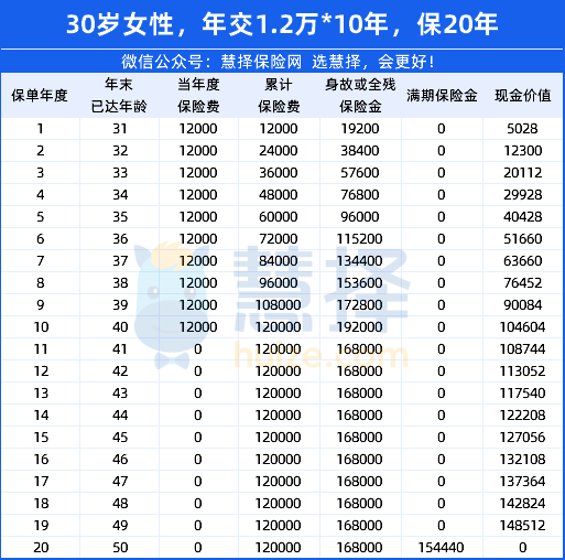保費(fèi):12000*10年=120000